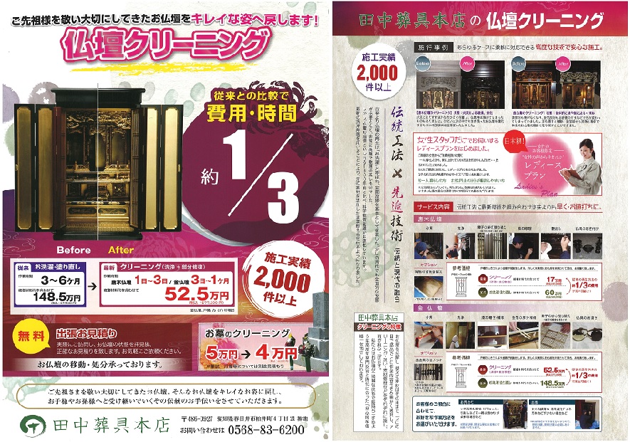 ご先祖様や故人を大切に供養するため、専門業者による仏壇のクリーニング・修復サービスを承ります。