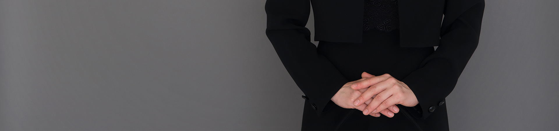 長袖または七分袖のワンピースまたはアンサンブルのブラックフォーマル(礼服)を基本に、黒のストッキング、黒のパンプス(3〜5cm程度の落ち着いたヒール)、アクセサリーは、白・黒の真珠の1連のみが一般的です。