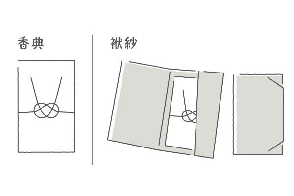 持ち運ぶ際は袱紗(ふくさ)に収納し、香典をお渡しする際は表書きが見えるように渡します。