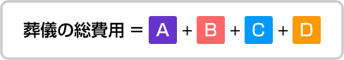 また葬儀の総費用は『A:パックプラン費用』、『B:葬儀諸費用』、『C:おもてなし費用』、