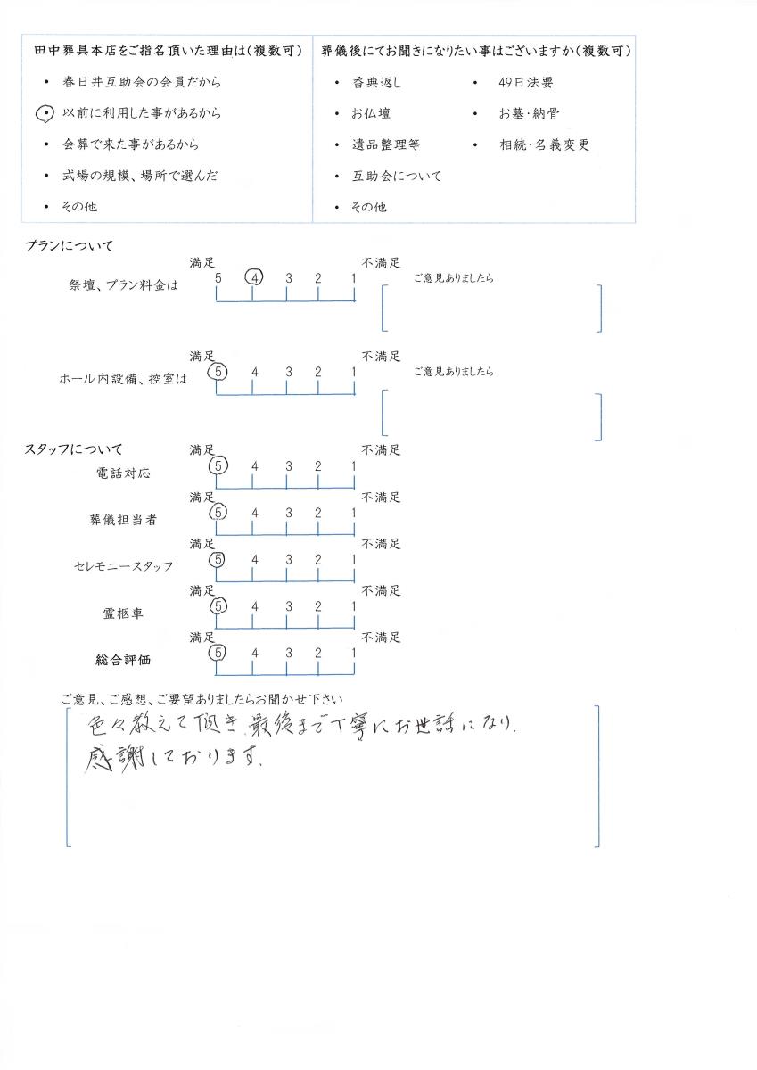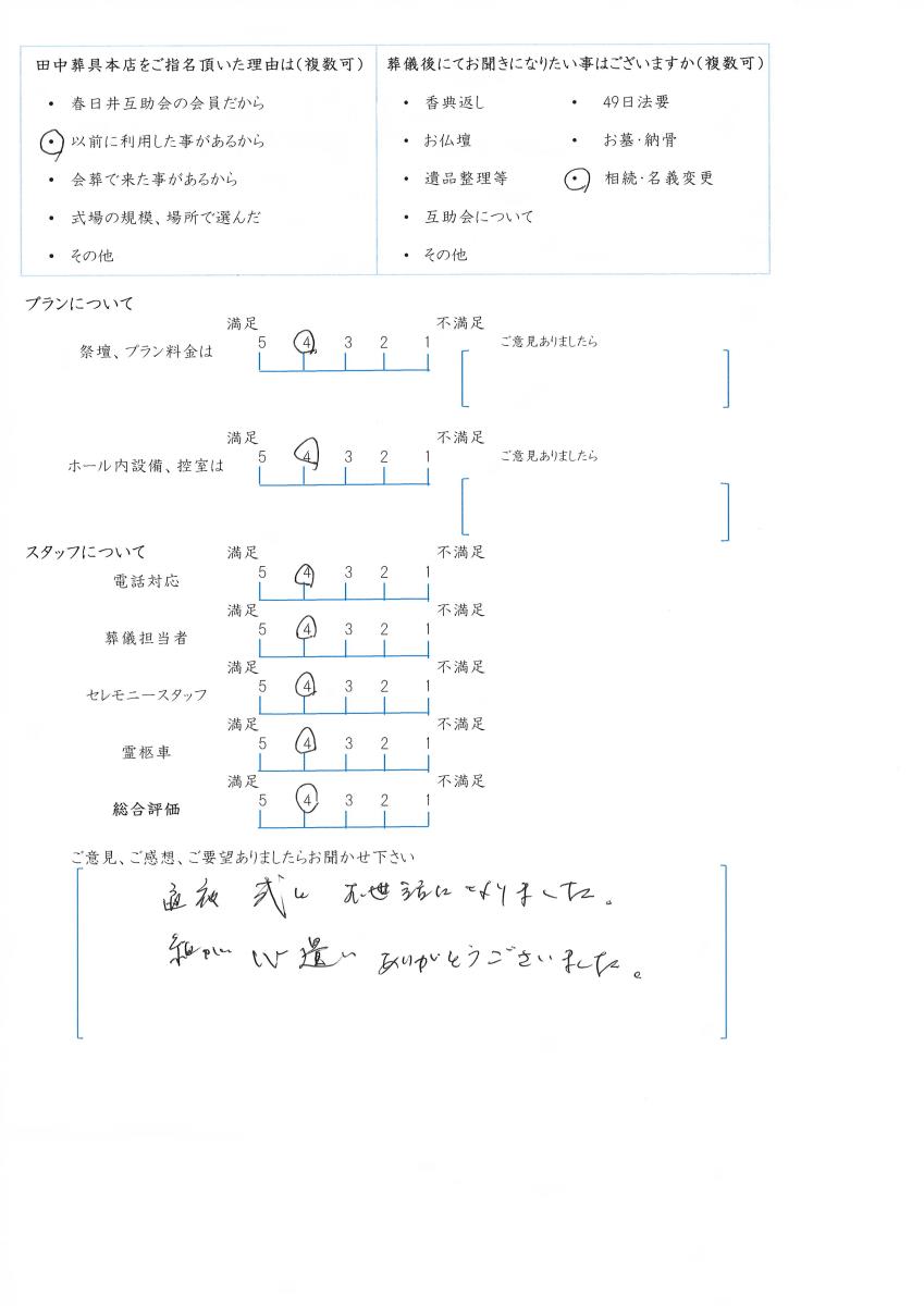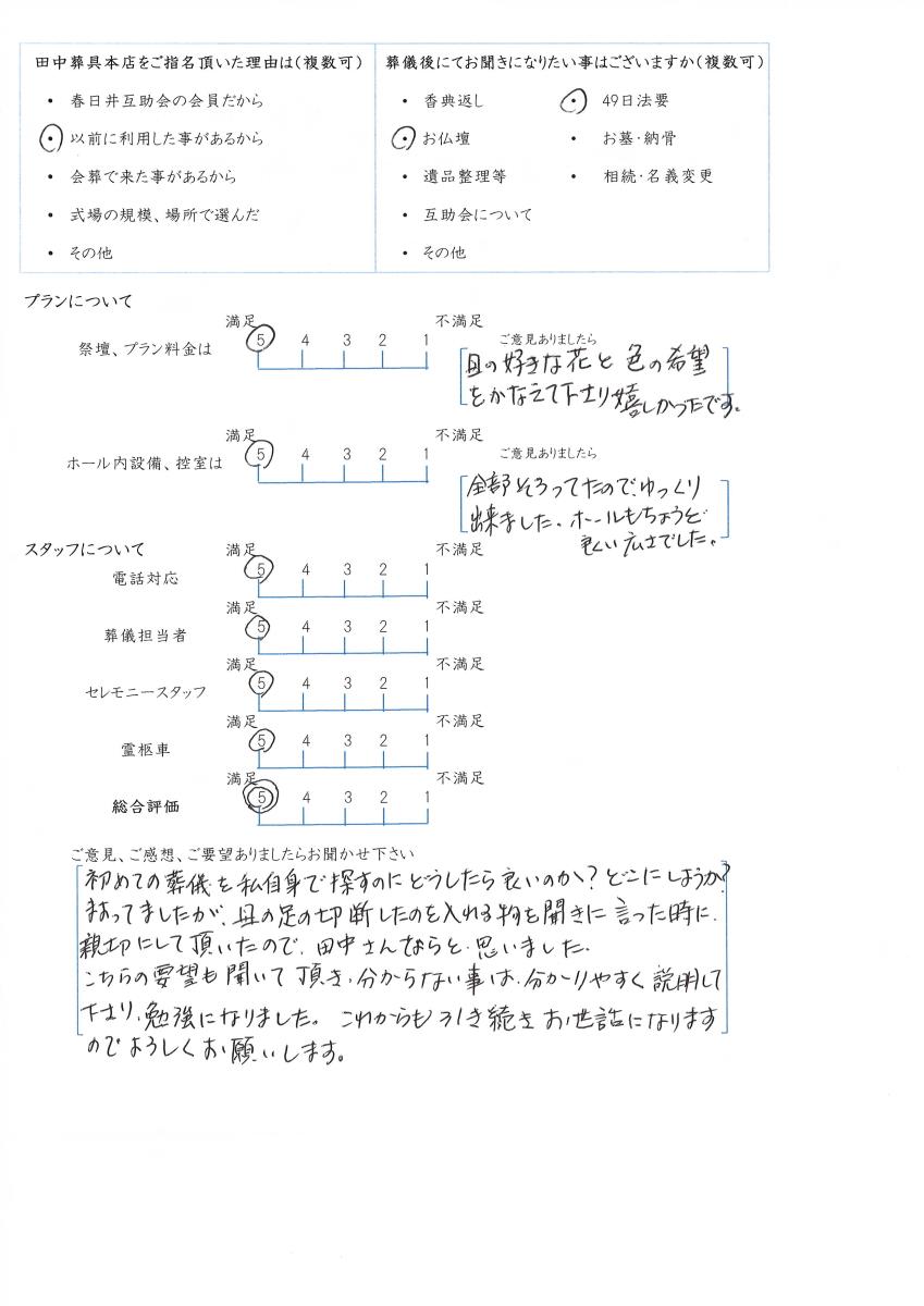 また、祭壇に関しましても満足頂けたようでありがとうございました。
