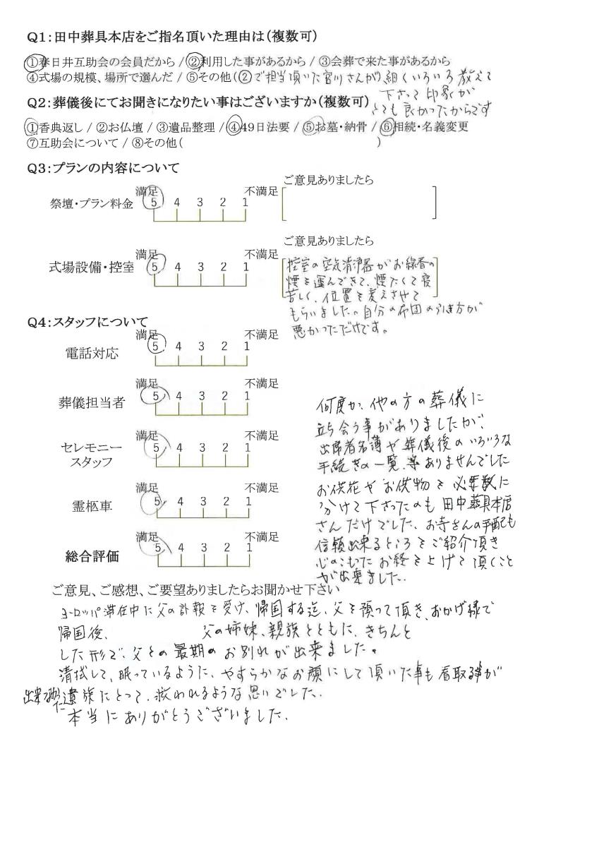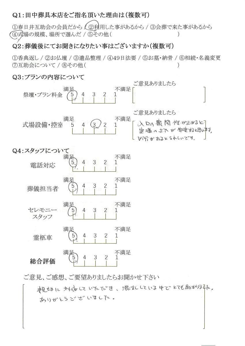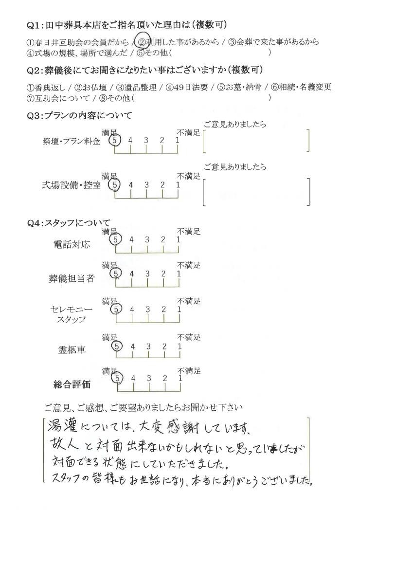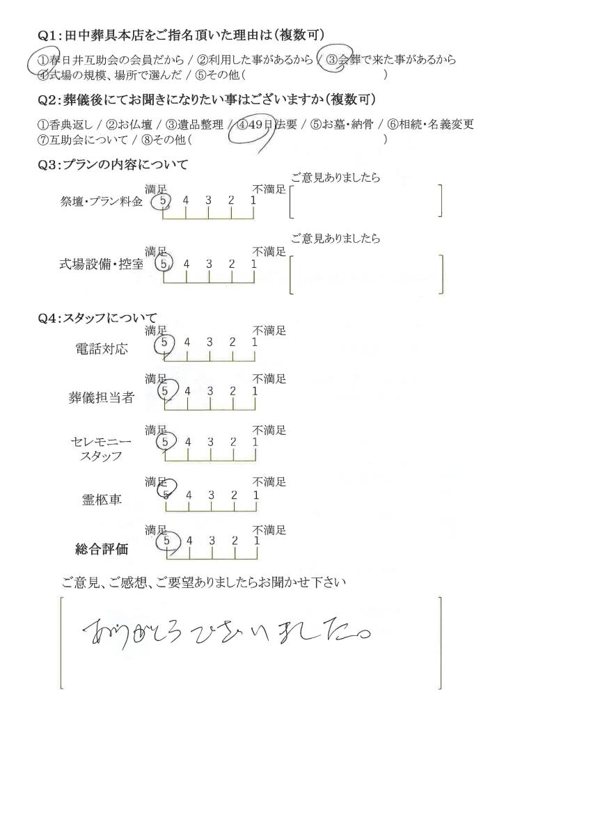 また、葬儀担当者に丸を2つ着けていただき、ありがとうございます。これからも、