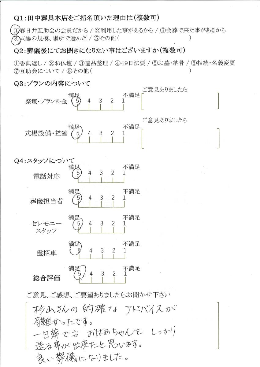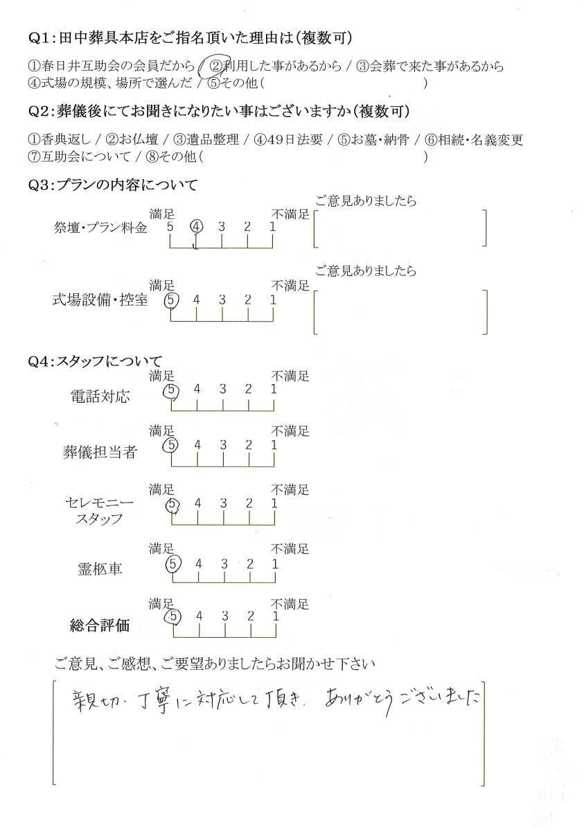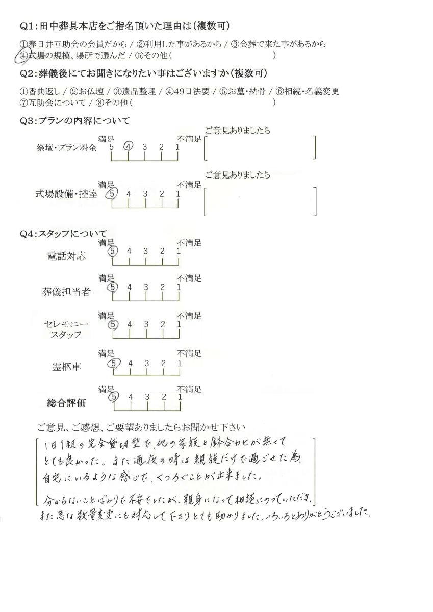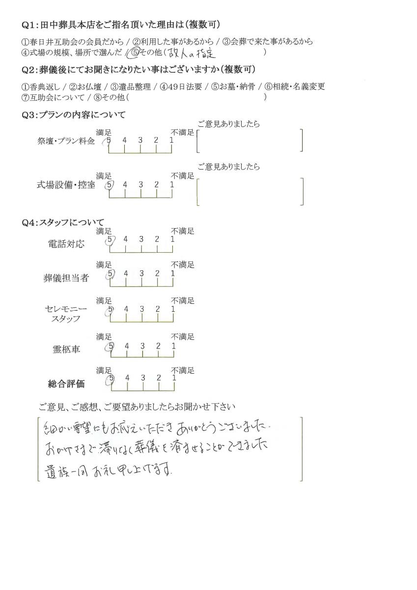 また、葬儀担当者に丸を2つ着けていただき、ありがとうございます。これからも、